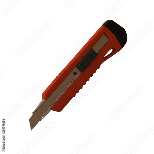 Red paper knife isolated on white background. 3D rendering of excellent quality in high resolution. It can be enlarged and used as a background or texture.