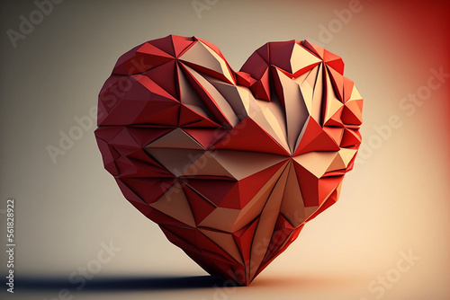 red paper origami heart made by generative ai