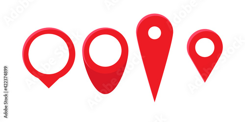 Red pin point icons set. Map location pointer isolated on white background. Vector illustration
