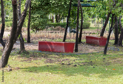 Red plastic bench were abandoned.