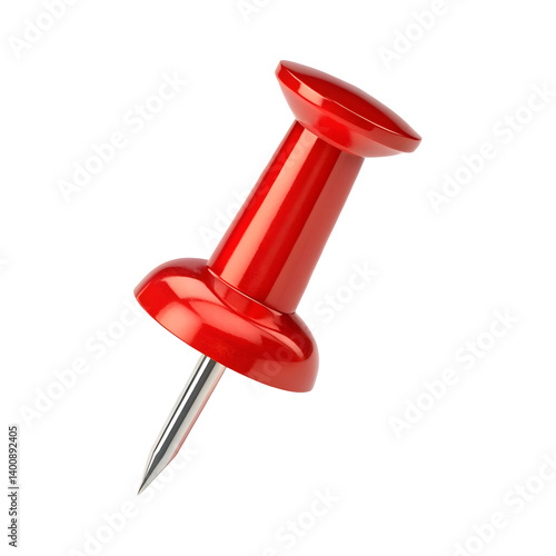 Red push pin 3d rendering isolated on transparent background. Red push pin cut out.