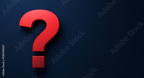 Red question mark on dark blue background, large free space for text Mockup, symbolizing inquiry, doubt, question, or FAQ concept