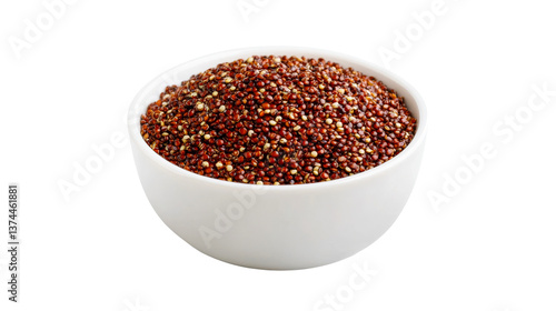 Red quinoa in bowl, healthy organic food, isolated element, cut out transparent