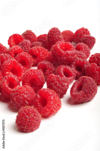Red raspberry on white background, close up