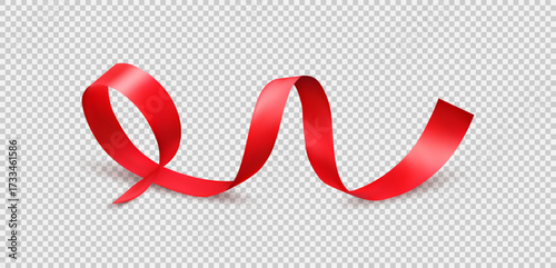Red Ribbon Decoration on Transparent Background Vector Illustration