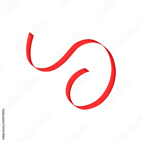Red Ribbon Swirl Curve Isolated Decorative Element on Transparent Background