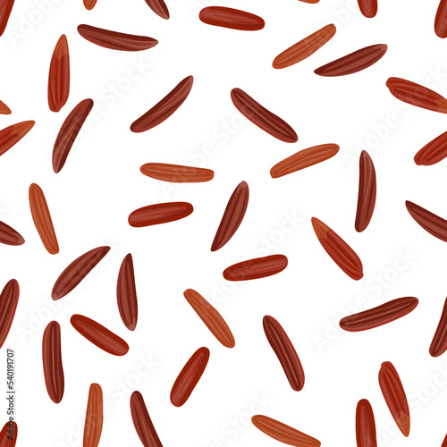 Red rice background. Seamless pattern with rice seeds. Vector illustration of healthy food.