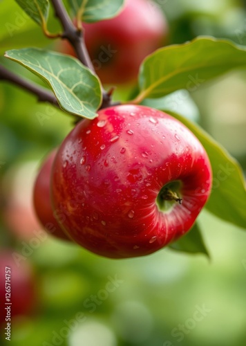 Red ripe fruits of apple rosa karpatia closeup with leaf bokeh green background bokeh red bokeh abstract background glow design light texture effect sparkle