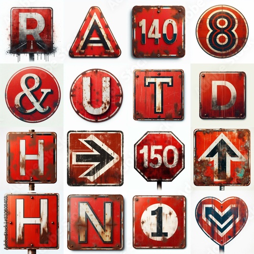 Red Road traffic sign Lettering Typeface. AI generated illustration
