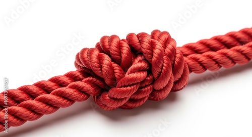 Red Rope's Tight Knot: A close-up of a bright red rope, intricately knotted to emphasize strength and the beauty of practical artistry, a visual metaphor for binding and connectivity.