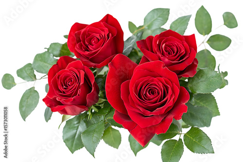 Red rose flowers in a floral arrangement isolated on white or transparent background.