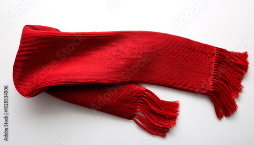 Red scarf isolated on white. Single object, copy space backdrop. Blank.Christmas decor