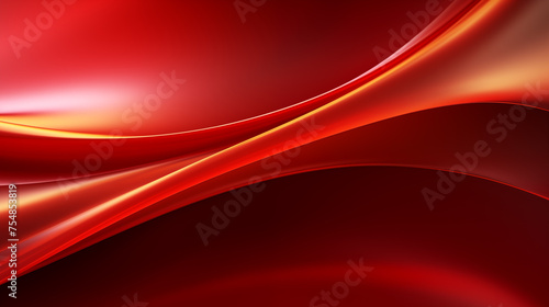 Red shiny chrome waves abstract background. Bright smooth waves on a dark background. Decorative horizontal banner. Digital artwork raster bitmap illustration. AI artwork.
