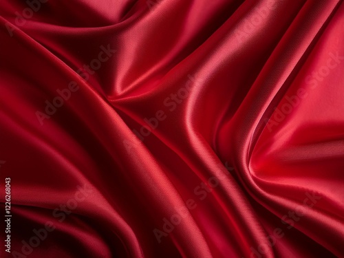 Red silk satin background. Beautiful soft wavy folds on smooth shiny fabric. Anniversary, Christmas, wedding, valentine, event, celebration concept. Red luxury background with copy space for design