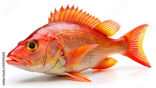 Red Snapper Fish with Vibrant Orange Scales and Sharp Dorsal Fins on a White Background