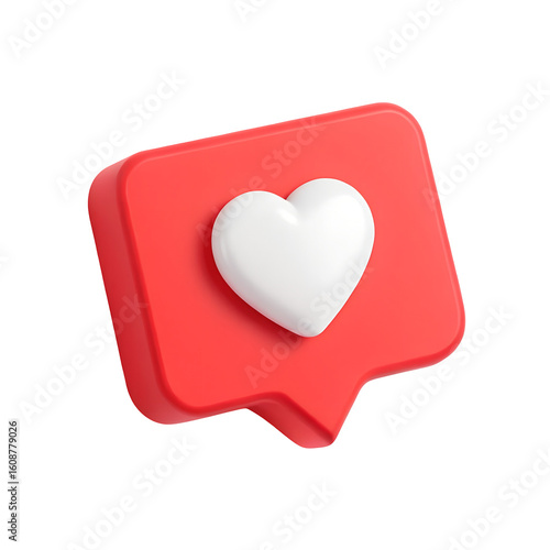 Red social media notification bubble with a white heart symbol isolated on transparent background