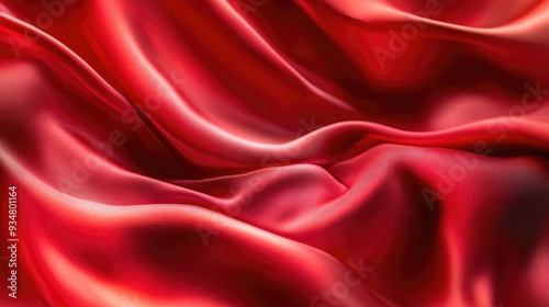 Red soft satin fabric waves background design. Texture with smooth flowing patterns and light shiny effect