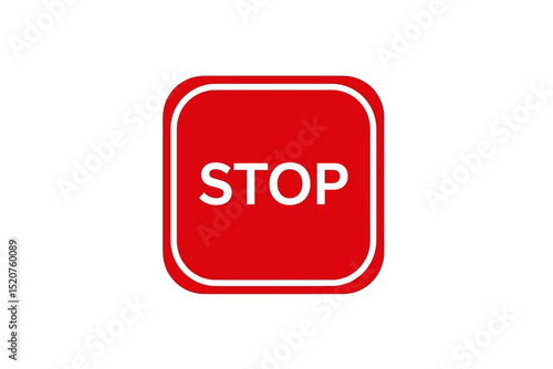 Red Square Stop Sign on White Background Safety Symbol