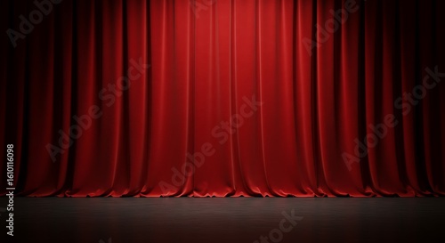 Red Stage Curtains and Dark Wood Floor Dramatic Theater Backdrop