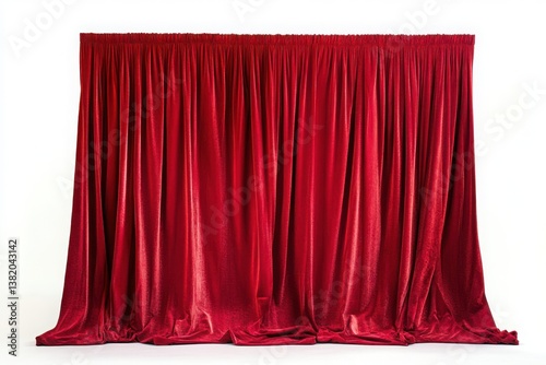 Red stage curtains isolated on white background for theatrical and performance backdrop