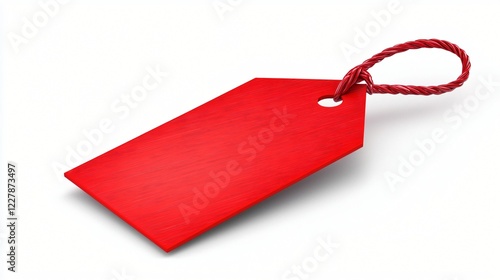 Red Tag With Braided String Attached For Price Or Identification Purposes Isolated.