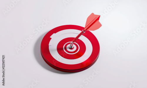 red target with dart hitting center, symbolizing focus and achievement. This represents goals and precision in various contexts