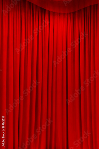 red theater curtain that dropped down as a straight line. Background for inserting text, empty spaces.