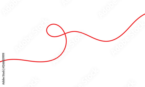 Red thread isolates on a white background. Red thread looped in a circle form, symbolizing vector. Line of red yarn, long red thread. Vector Illustration .