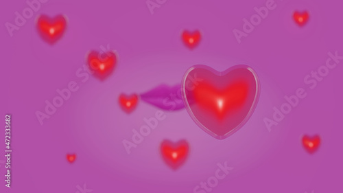 Red transparent hearts are sprouting from a pink lips with gradient blur pink background (3D Rendering)