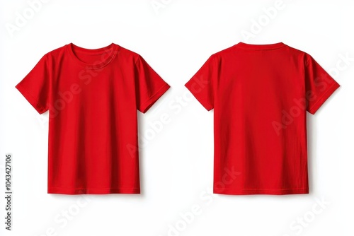 Red t-shirt design, front and back view, white isolate background
