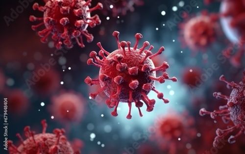 Red virus or bacteria macro in the body of person infected with coronavirus AI
