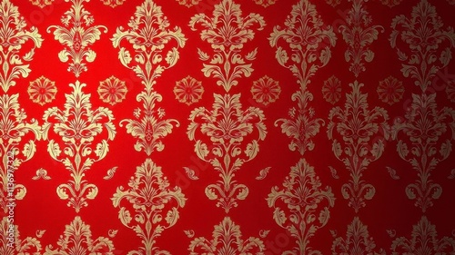 Red wallpaper with a stunning damask pattern perfect for adding a touch of elegance to any room, damask, texture, rich