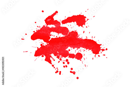 Red watercolor splash with dynamic splash effect on transparent background. Watercolor brush.