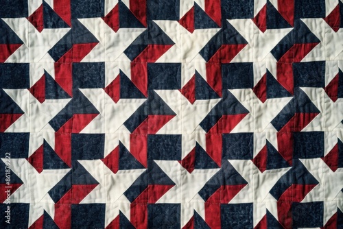 Red, white and blue houndstooth quilt with star pattern Background with copy space for design Generative AI