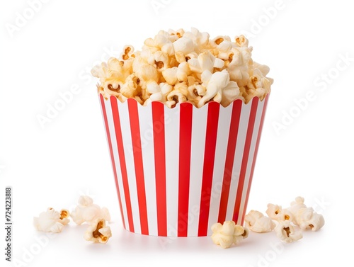 Red White Paper Popcorn Bucket Cinema Snack Isolated on White Background AI Generated