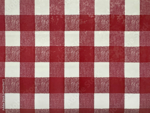 Red white picnic table cloth seamless background texture. Gingham pattern or vichy check, a common plaid square pattern often used for picnic theme. Checkered pattern, red and white.