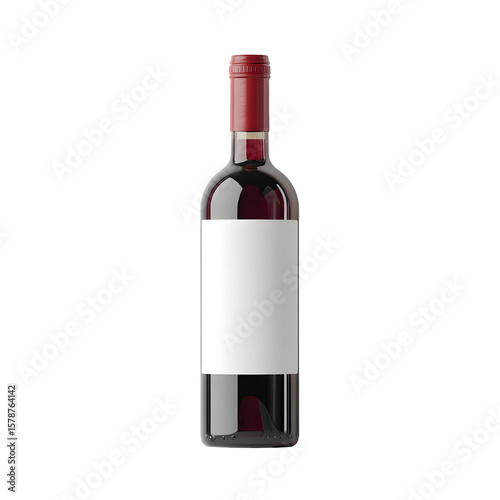 Red Wine Bottle with Blank Label on Transparent Background