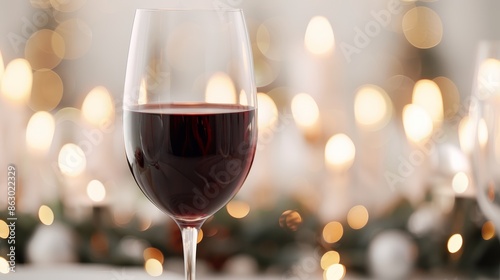 Red wine flows smoothly into a glass, candlelit dinner setting in the background, soft focus on flickering candles and elegant table setup