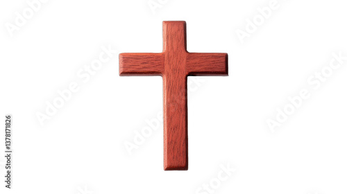 Red wooden cross, simple yet bold design, symbol of faith and spirituality, suitable for religious contexts and decor. Isolated on white background or PNG