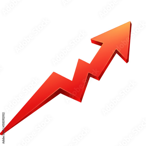 Red zigzag arrow pointing upwards indicating growth and progress isolated on transparent background