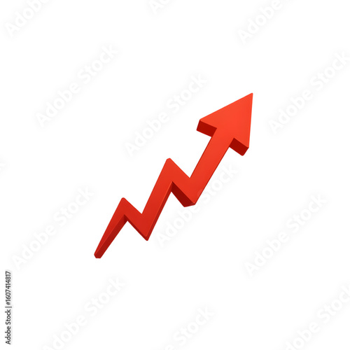 Red zigzag upward arrow symbol in flat design style