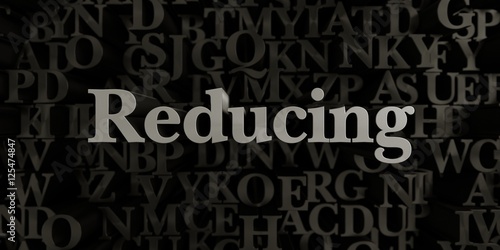 Reducing - Stock image of 3D rendered metallic typeset headline illustration. Can be used for an online banner ad or a print postcard.