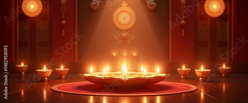 Refined Vesak Lighting Decoration: Elegant Luminous Displays for Formal Ambient Lighting & Sophisticated Ceremonial Decor in Photo Stock Concept