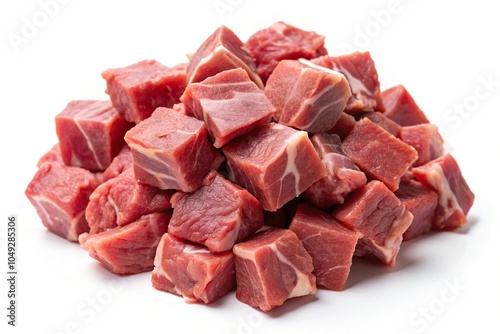Reflected raw lamb and mutton meat chunk isolated on white background
