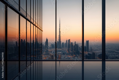 Reflecting ambition skyscraper architecture at sunset in business hub