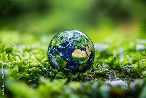 Reflection of Earth on Leaf Droplet in Nature