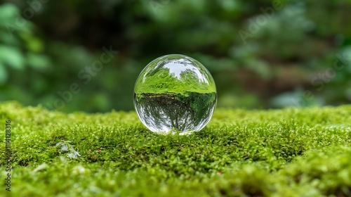 Reflective Glass Globe Resting on Lush Moss Bed Representing Environmental Awareness