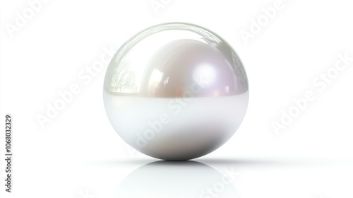 Reflective silver pearl icon in 3D, with polished metallic finish, isolated on a white background.