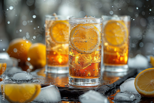 Refreshing chilled drinks like ice drinks and fresh juicy juices perfect for hot summer days with copy space image