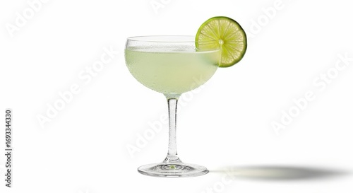 Refreshing Classic Lime Margarita Cocktail with a Lime Wedge Garnish and Salt Rim